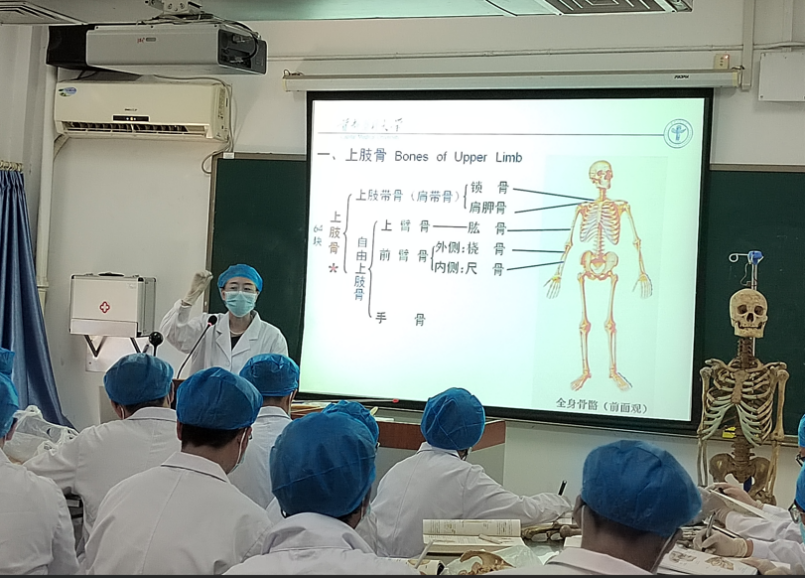李囡老师以《上肢骨及其连接》为题,运用实物标本、案例导入和互动问答,将复杂结构生动呈现,课堂氛围活跃,充分展现了“四有好老师”的教学风采。