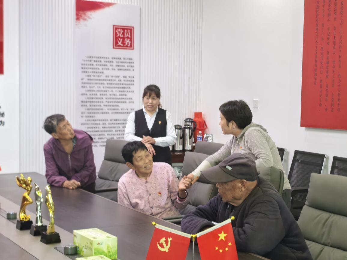 随后,党员们在活动中心与村中老党员围坐交流。在聆听革命故事的过程中,老党员们谈及村子近年来的发展变化,特别提到了农村医疗服务的改善:“过去村里没医少药,乡亲们头疼脑热都要翻山越岭去乡里,最缺的就是扎根基层的好医生。现在党的政策好,你们培养的娃娃以后能来村里当村医,乡亲们看病不用出村,这可是给咱农村人办实事!”老党员们朴实的话语,传递出村民对基层医疗保障的真切需求,让党员们深刻认识到了“服务保障”工作的责任与担当。