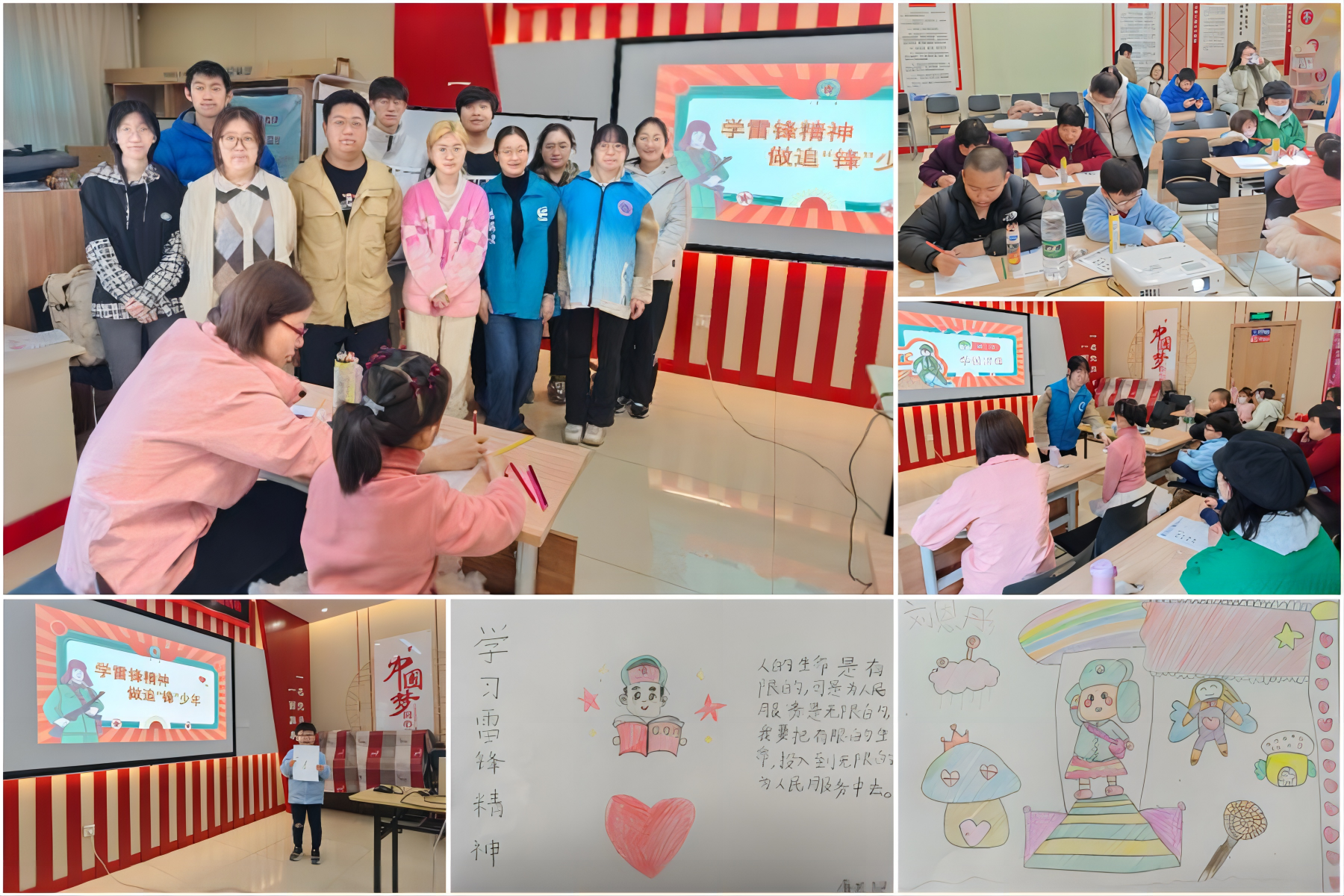 最后潘瑞凝同学组织小朋友开展“学习雷锋精神”,“画心中的雷锋”互动活动,鼓励现场的小朋友和家长们一起画出自己心目中的“雷锋”形象。小朋友们展现了他们的奇思妙想,志愿者们适时下场给予帮助和指导,现场一片欢声笑语,气氛融洽。