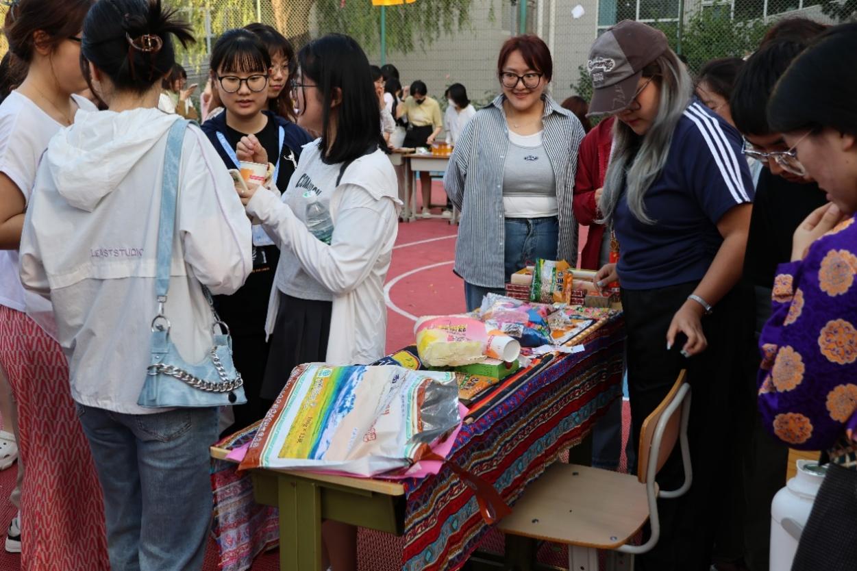 在藏式特色活动体验环节,童噶社在各活动摊位上展示了别具特色的藏族服饰文化、饮食、藏文字及藏式游戏等。在藏族同学们的带领下,同学们不仅可以品尝到甜茶、奶渣糖等独具风味的藏族零食,还可以领取藏族同学们亲手书写的藏文祝福卡片,此外,同学们还尝试编彩辫、试穿藏族服装,感受藏族生活方式,领略藏文化魅力。