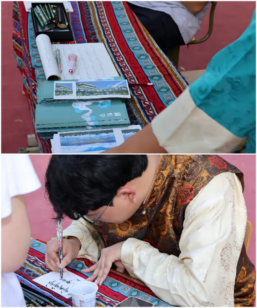 藏族同学们亲手书写藏文祝福卡片