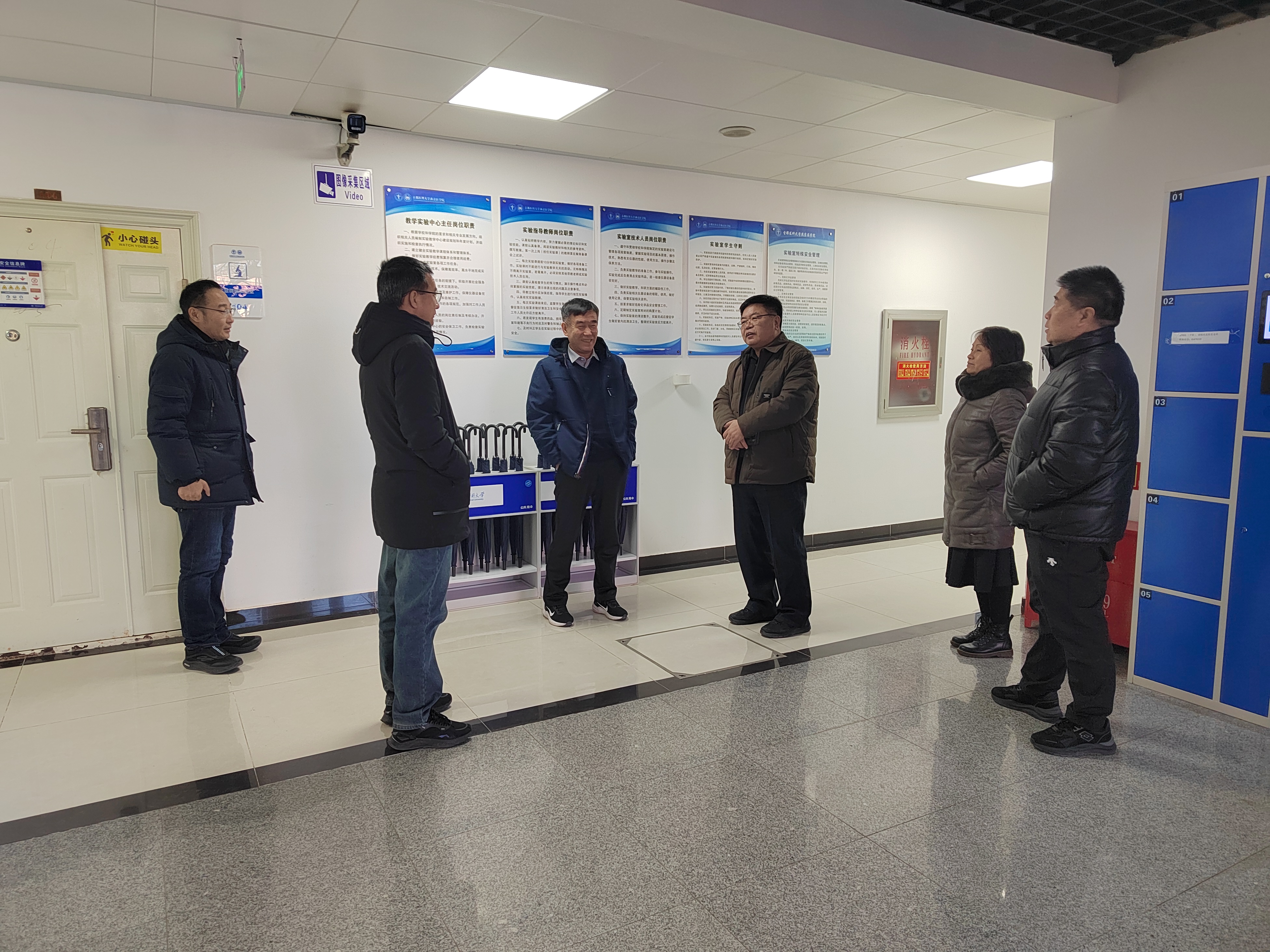 检查过程中,吴兵副校长一行重点走访查看了校区内新建的充电自行车车棚、中心实验室、危化品库房等重点部位与关键场所。