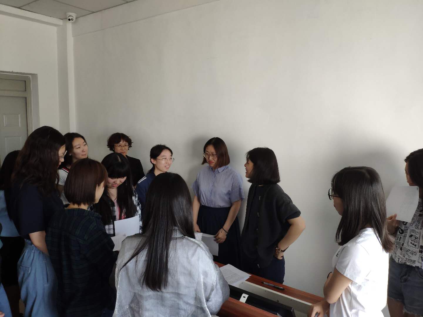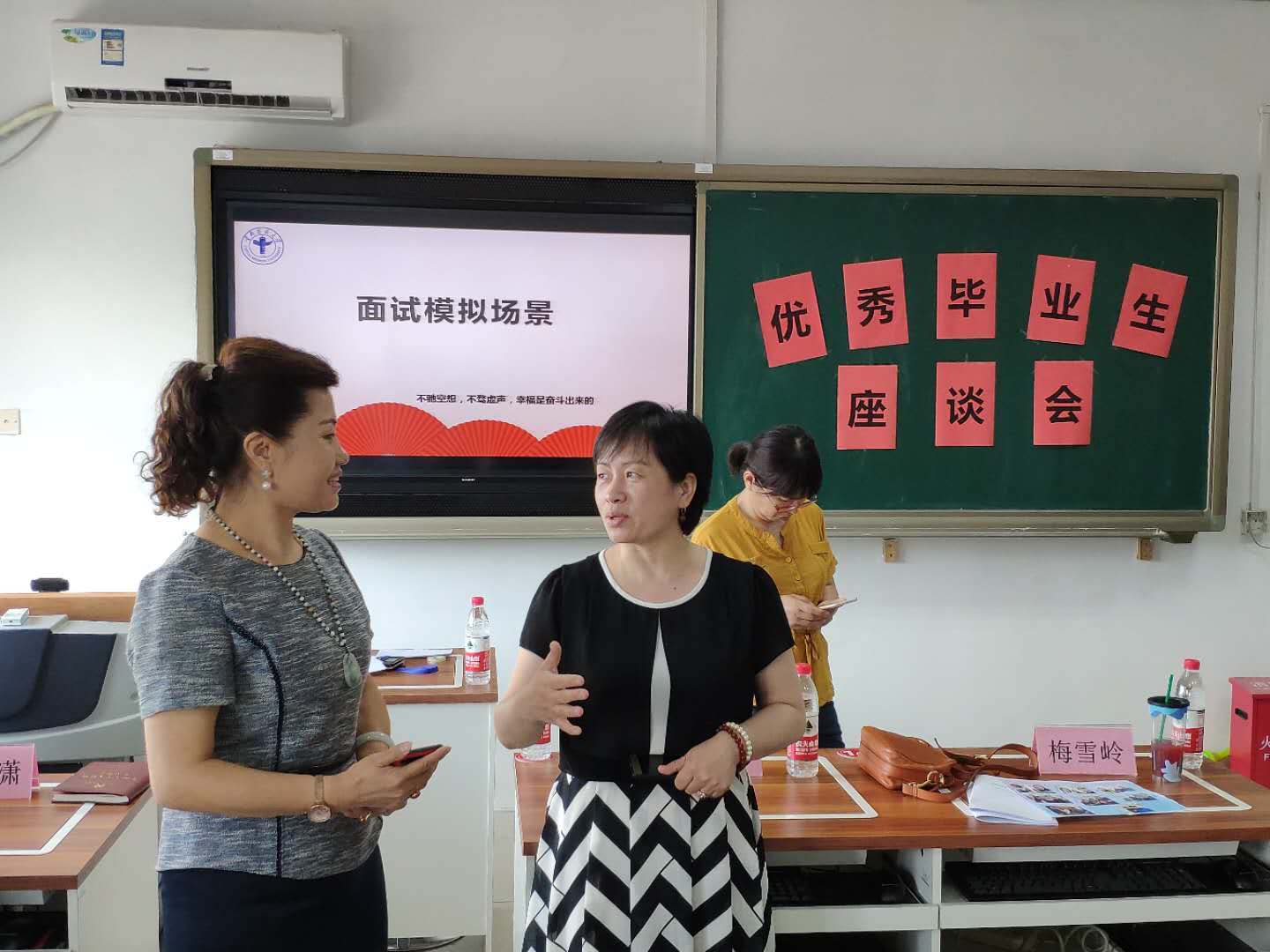 会上进行了现场模拟面试场景与专业技能考核。将学生分四组,梅主任和三位毕业生四人分别负责模拟面试、EXCLE和PPT操作现场考核、写作能力考核、病案阅读能力考核,涵盖表达能力、操作能力、写作能力及阅读能力四个方面。