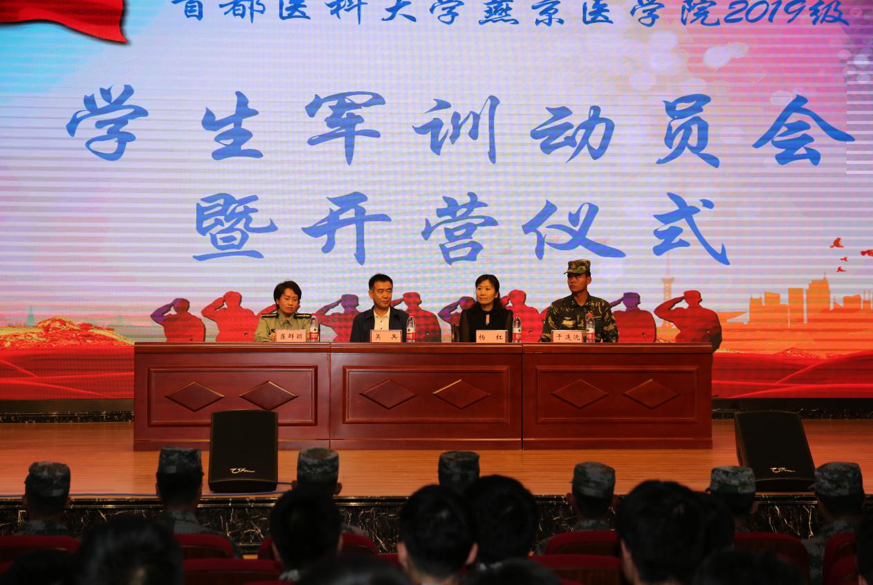 2019级学生军训动员会暨开营仪式在学院报告厅举行。学院党委书记吴兵,院长杨红,党委副书记、军训团副政委崔群颖,军训团承训部队燕京部分负责人于连沅,各连队连长、指导员,军训团其他教师和610余名大一新生共同参加动员会。