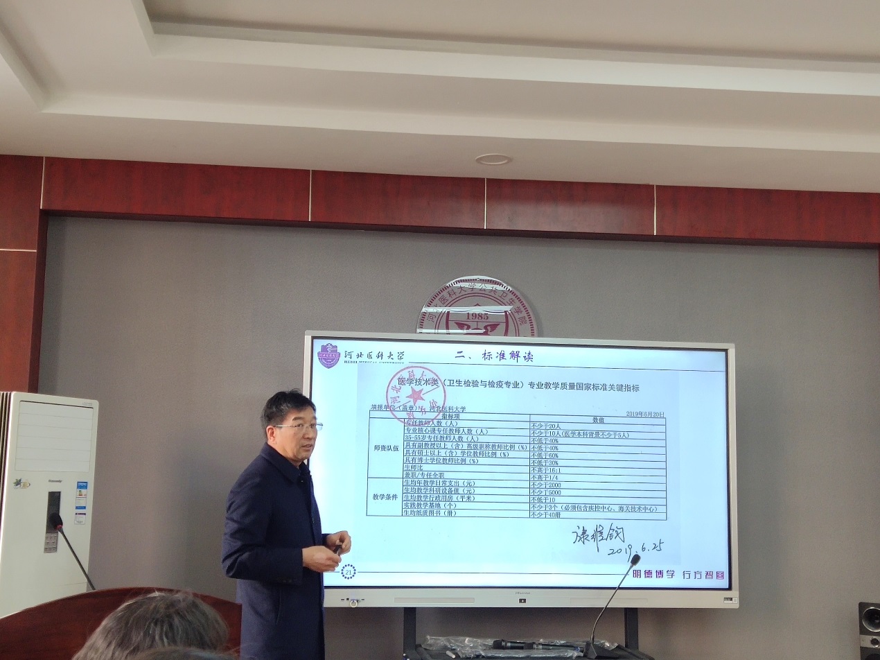 牛玉杰院长介绍了学院的情况,学院目前开设4个专业,其中卫生检验与检疫专业全国专业排名第7位,各类教学科研设备3千台件,总值4千余万元,现有一个省级重点实验室,流行病与统计学专业为省级重点学科、博士学位授权点,预防医学为硕士一级学科学位授权点,拥有公共卫生硕士(MPH)授予权。康维钧教授就卫生检验与检疫专业历史沿革、国家标准制定、专业建设等方面的情况进行介绍。