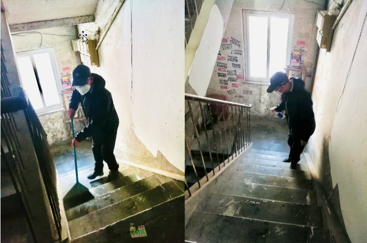 骆雨辰老师积极参加社区居民防疫宣传,并配合社区做好卫生打扫、楼道消毒等相关工作。