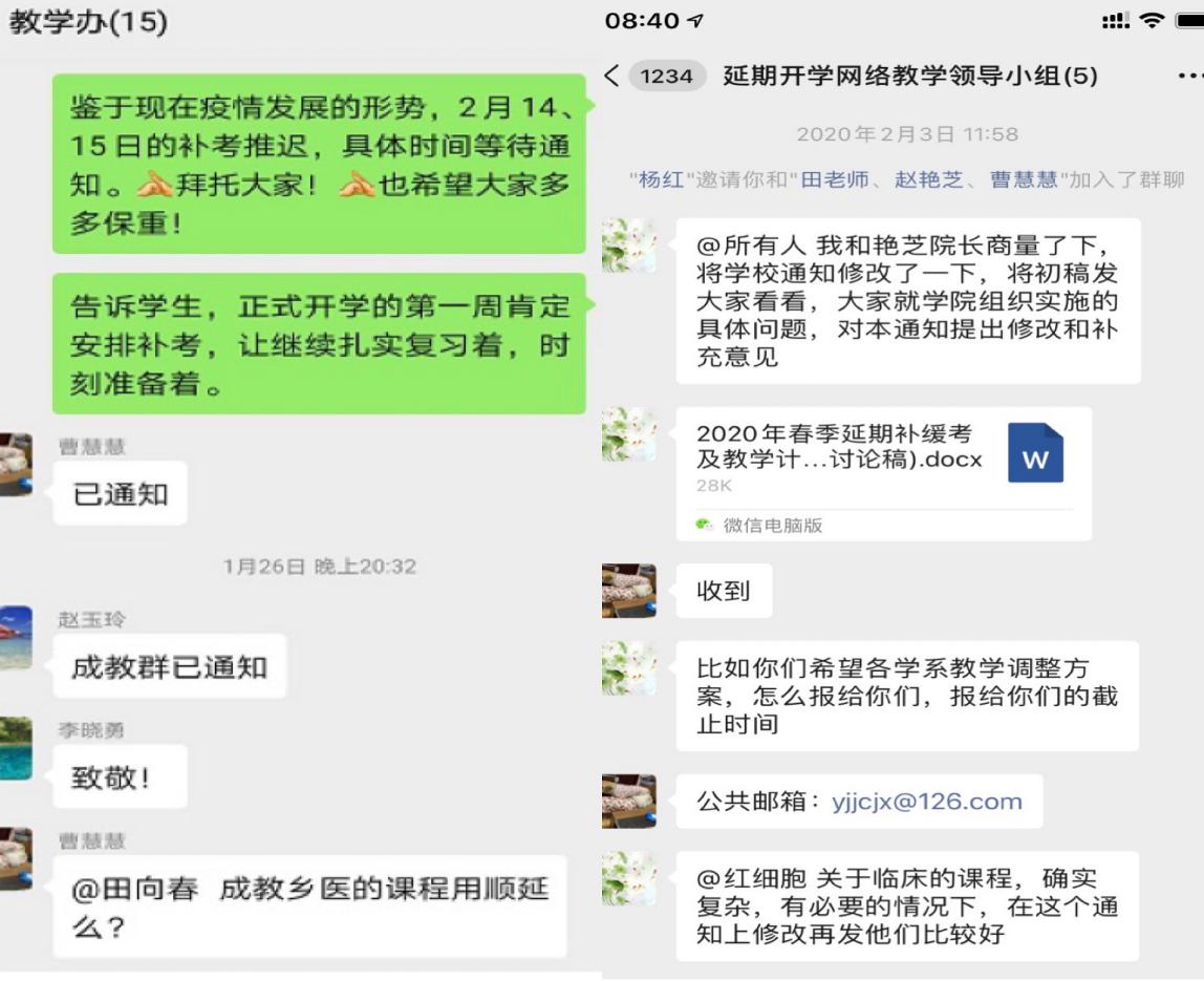 院领导和教学办多次微信会议协调教学调整工作