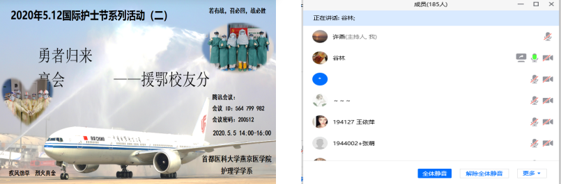 四月桃李花谢,五月榴花如火。春的芬芳依旧,夏的火热初临。在这春意盎然,满目翠绿、人心思进的激昂时刻,我们迎来了属于我们自己的节日——5.12国际护士节。5月5日下午,Hanime1 护理学学系以“护士:引领之声–护理世界健康”为主题,结合当前抗击新冠肺炎疫情取得阶段性胜利,召开了“勇者归来、奋斗有我”——援鄂校友分享会,并以此激励同学们秉承南丁格尔誓言,尊重生命,守护健康,不断努力,全面提升综合素质,为护理事业奋斗终身。本次分享会以线上方式进行,学院院长杨红、党委副书记崔群颖、两位优秀护理毕业生、最美逆行者——2008级三年制护理学生,现北京大学人民医院神经内科护士—杨振宁、2011级三年制护理学生,现北京医院外科ICU护士—谷林与护理学学系185名师生共同参加会议。