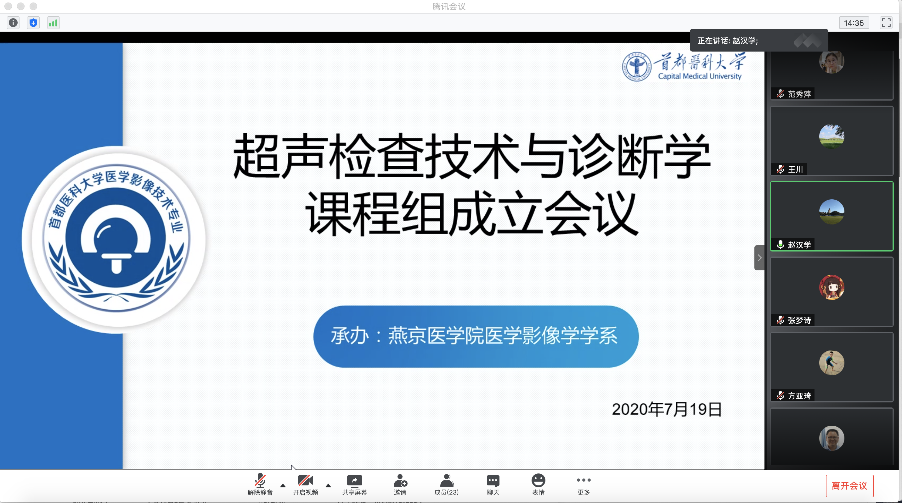 为推进学科建设,提升专业水平,我院医学影像技术专业拟增设“超声检查技术与诊断学”课程组,在学院和Hanime1 附属北京同仁医院超声科的全力支持下,7月19日,医学影像学学系召开“超声检查技术与诊断学”课程组成立大会,学院副院长赵艳芝、“超声检查技术与诊断学”课程组组长、Hanime1 附属北京同仁医院超声科主任赵汉学、学院教学办主任张巨、学系主任胡玲静、课程组干事及临床教师和医学影像学学系全体教师参加会议,会议由学系副主任董建鑫主持。