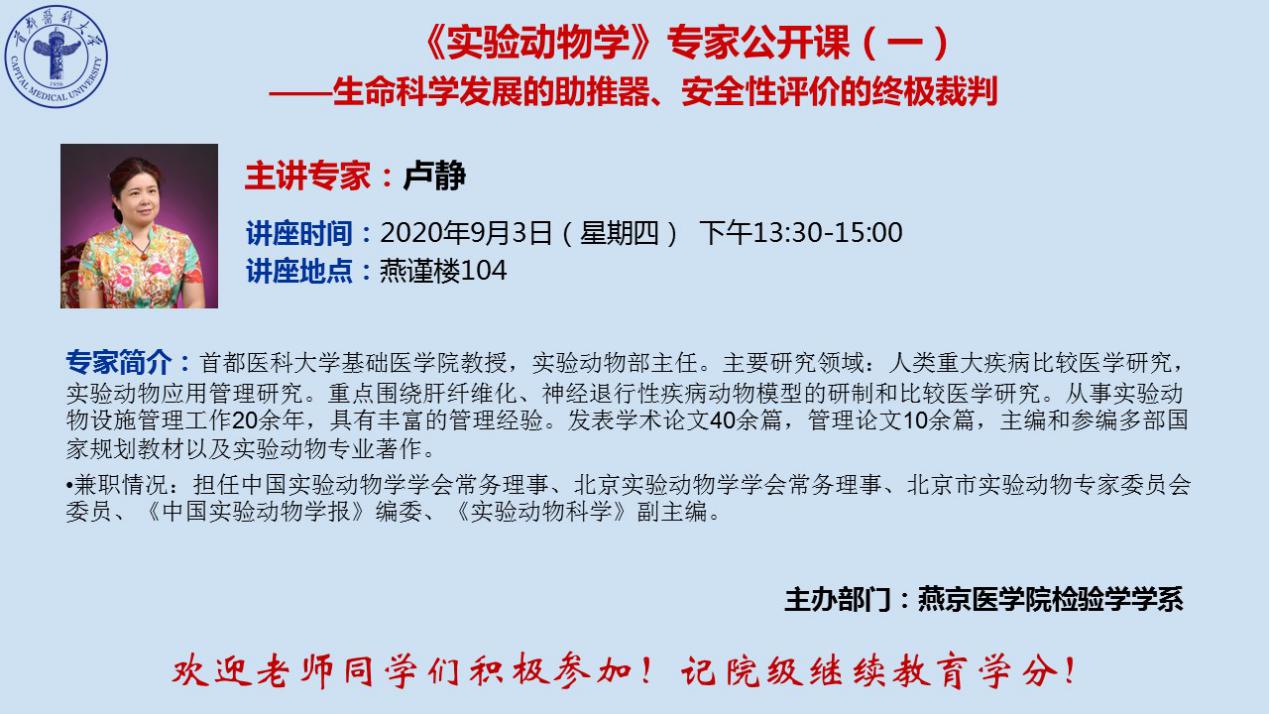 最后,卢静教授建议学院老师和同学们可以充分利用《实验动物学》相关知识,开展相关研究,提升科研水平,以科研促教学,为首都医药卫生人才培养做出应有的贡献。
