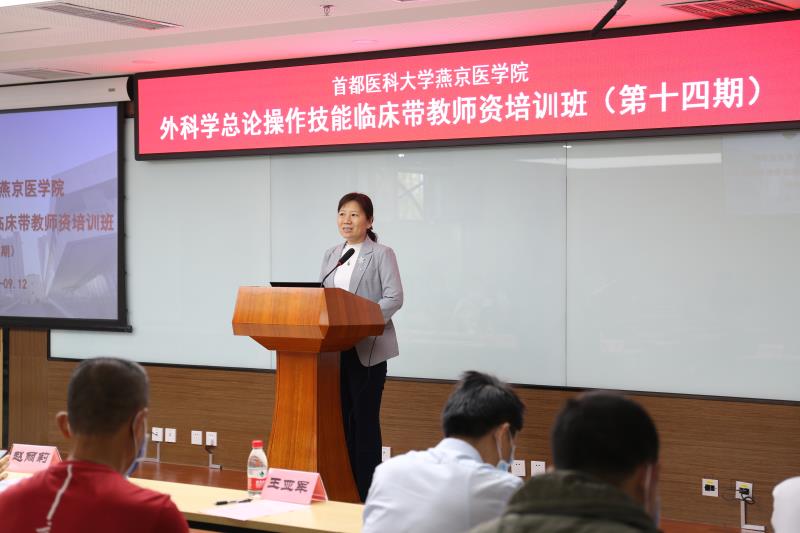 为进一步提升教学医院临床教学师资水平,规范外科学总论基本操作技能,9月11日,由我院举办、宣武医院承办的2020年外科学总论技能培训班在宣武医院教学楼举行。我校教务处副处长赵丽莉、Hanime1 院长杨红、副院长赵艳芝、宣武医院教育处处长王亚军同各教学医院科教科人员、参培教师一同出席会议,会议由王亚军处长主持。