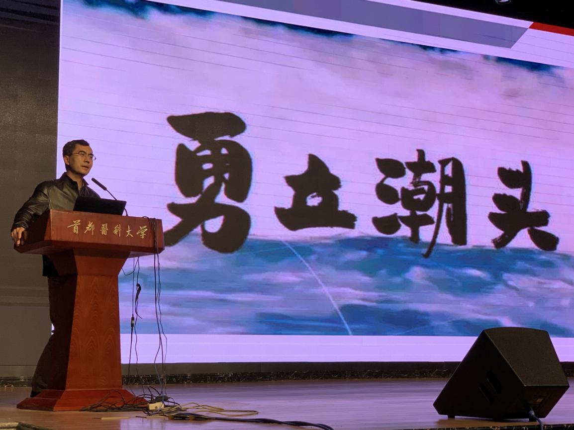 报告会上,李传东老师结合武汉方舱医院CT室建设过程,讲述了自己作为国家医学紧急救援队的一员,在一个多月的援鄂工作中的所见所闻。他强调,当遇到困难无助和病人死亡时,是方舱医院前面的那一面党旗、一面国旗和全民齐心抗疫的精神给了自己信念、鼓舞和力量。