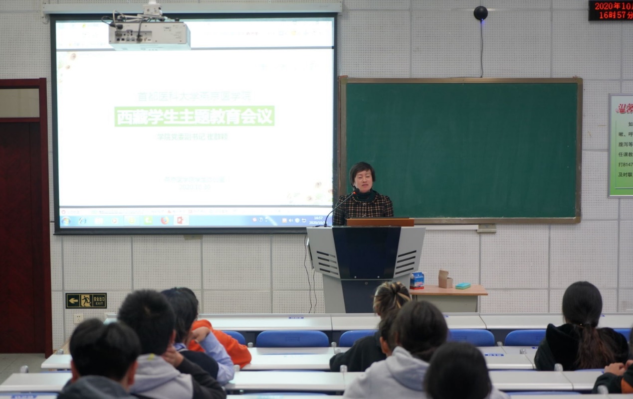 讲座结束后,学院党委副书记崔群颖主持了西藏学生主题教育会。通过与学生们面对面的交流,切实了解了他们在学院的学习和生活状况,集中解答了他们的困难和疑惑,并向大家提出了纪律、学业和未来规划等方面的要求与期望,希望大家都能够在校园里健康、快乐、积极地学习和成长。