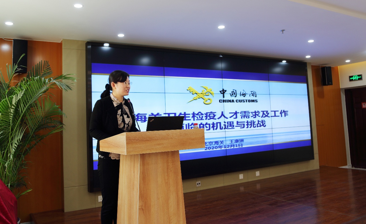 北京海关卫生检疫处王康琳副处长从海关卫生检疫职能、北京口岸卫生检疫工作情况、海关卫生检疫人才需求及展望三个方面介绍了海关卫生检疫人才需求及工作面临的机遇与挑战。