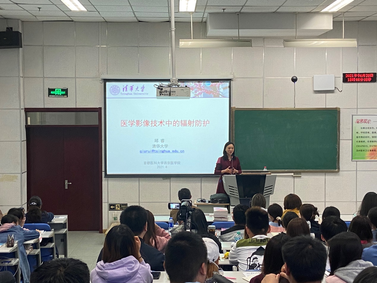 4月20日,我学系邀请青年长江学者、清华大学特别研究员、博士生导师邱睿副教授来院为学系学生作“医学影像技术中的辐射防护”专题讲座。我院杨红院长、医学影像学学系胡玲静主任、董建鑫副主任、胡贵祥副主任以及学系教师出席讲座。
