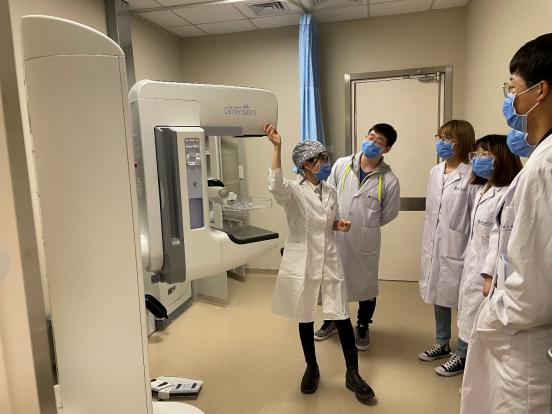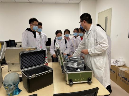 实践活动开始后,49名学生分为7个小组,在老师的带领下,分别对CT、磁共振、DR、乳腺DR、移动DR、骨密度、PACS、质量控制和实验器材进行轮转学习。