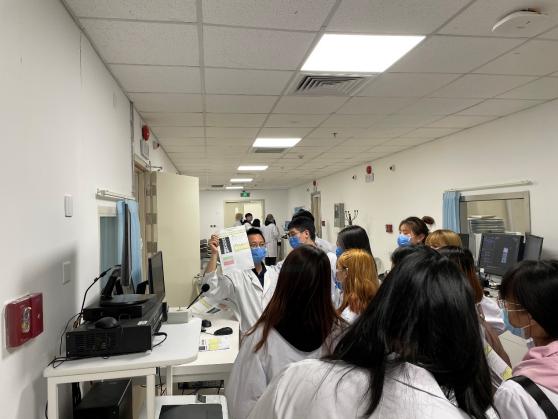在我院杨红院长和医学影像学学系胡玲静主任的带领下,8位教师和49名学生来到同仁医院亦庄院区放射科参加教学实践活动。同仁医院放射科鲜军舫主任、牛延涛主任技师、11名放射技师和3位工程师参加了此次活动。