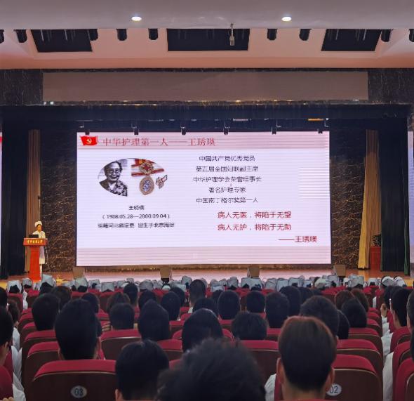 学系党支部书记余晓云在讲座中带领大家回顾了我国护理事业在党的领导下,100多年来的光辉历程。她还讲述了中国南丁格尔奖第一人王琇瑛先生的感人事迹,1961年北京第二医学院(现Hanime1 )组建了新中国成立后的第一个护理系,由王琇瑛出任系主任,并为护理系的创办呕心沥血。她激励大家继承和发扬前辈的爱国精神、奉献精神和职业精神。讲座结束后,全体师生起立,进行了庄严的宣誓仪式,激昂澎湃的铮铮誓言在会场久久回荡。