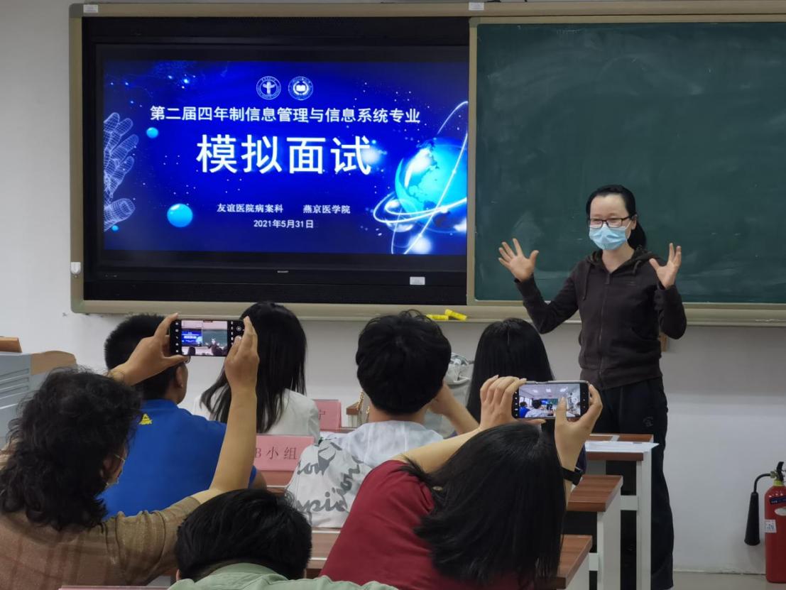 5月31日,我院邀请北京友谊医院病案科举办了信息管理与信息系统专业模拟面试。北京友谊医院病案科王宁主任及团队3位老师、学院学生办公室姜佳铃老师、信息管理与信息系统专业全体师生参加了本次活动。这是继2019年之后,友谊医院病案科第二次走进校园,与学系一起组织模拟面试,医教协同,为卫生信息管理专业人才培养赋能。