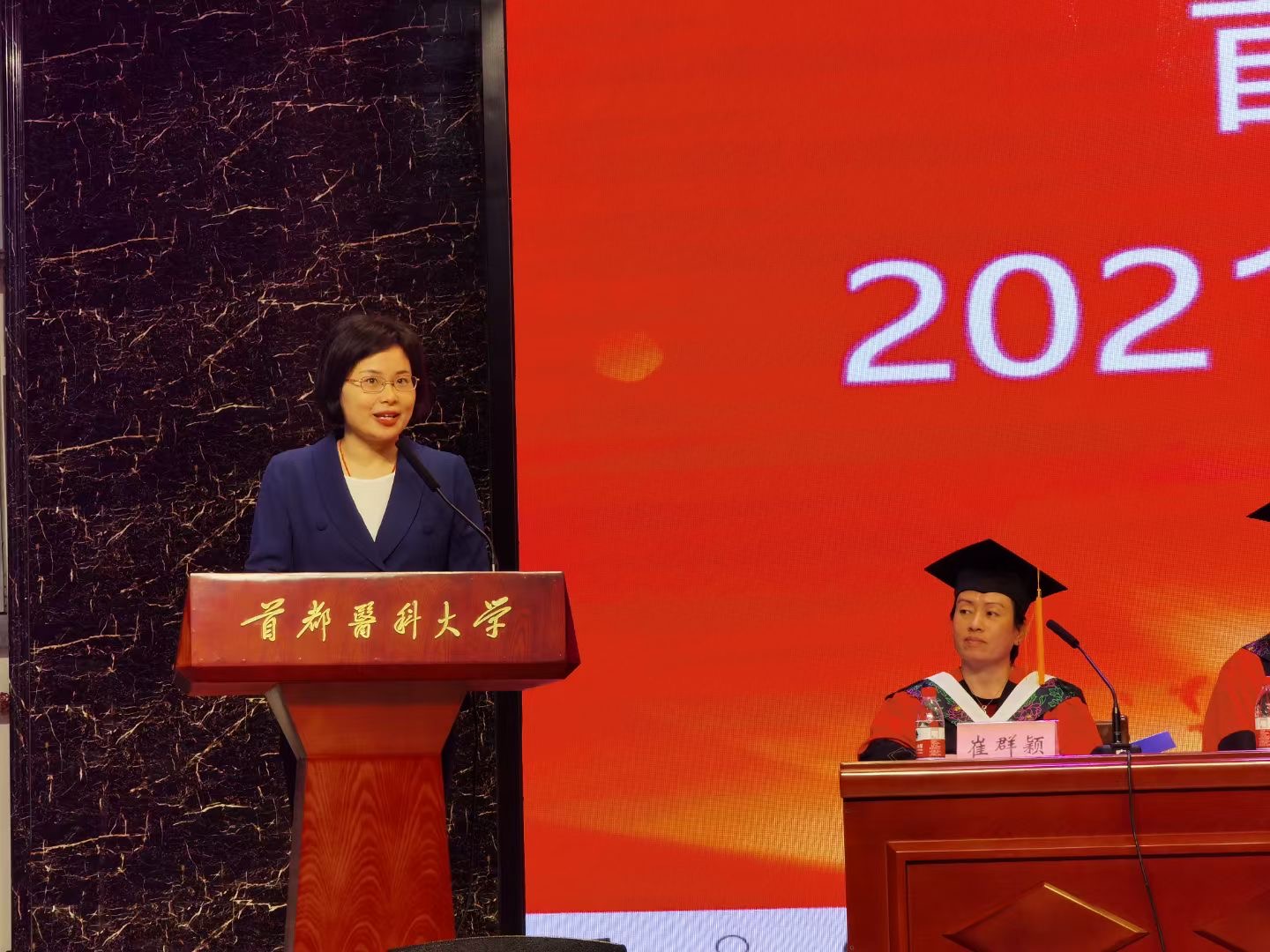 百年恰是风华正茂,又是一年桃李芳菲。在举国同庆建党百年华诞之际,7月6日上午,我院本专科生毕业典礼暨学位授予仪式在学院报告厅隆重举行。677名学子顺利完成学业,即将秉承“扶伤济世 敬德修业”校训精神,扬起青春之帆,开启医路之旅。学院领导班子全体成员、临床教学医院相关领导出席典礼,为在场毕业生颁发学位证书、拨正流苏。2021届毕业生、各学系党支部书记、主任、学院相关部门主要负责人参加了典礼。典礼由学院党委副书记崔群颖主持。