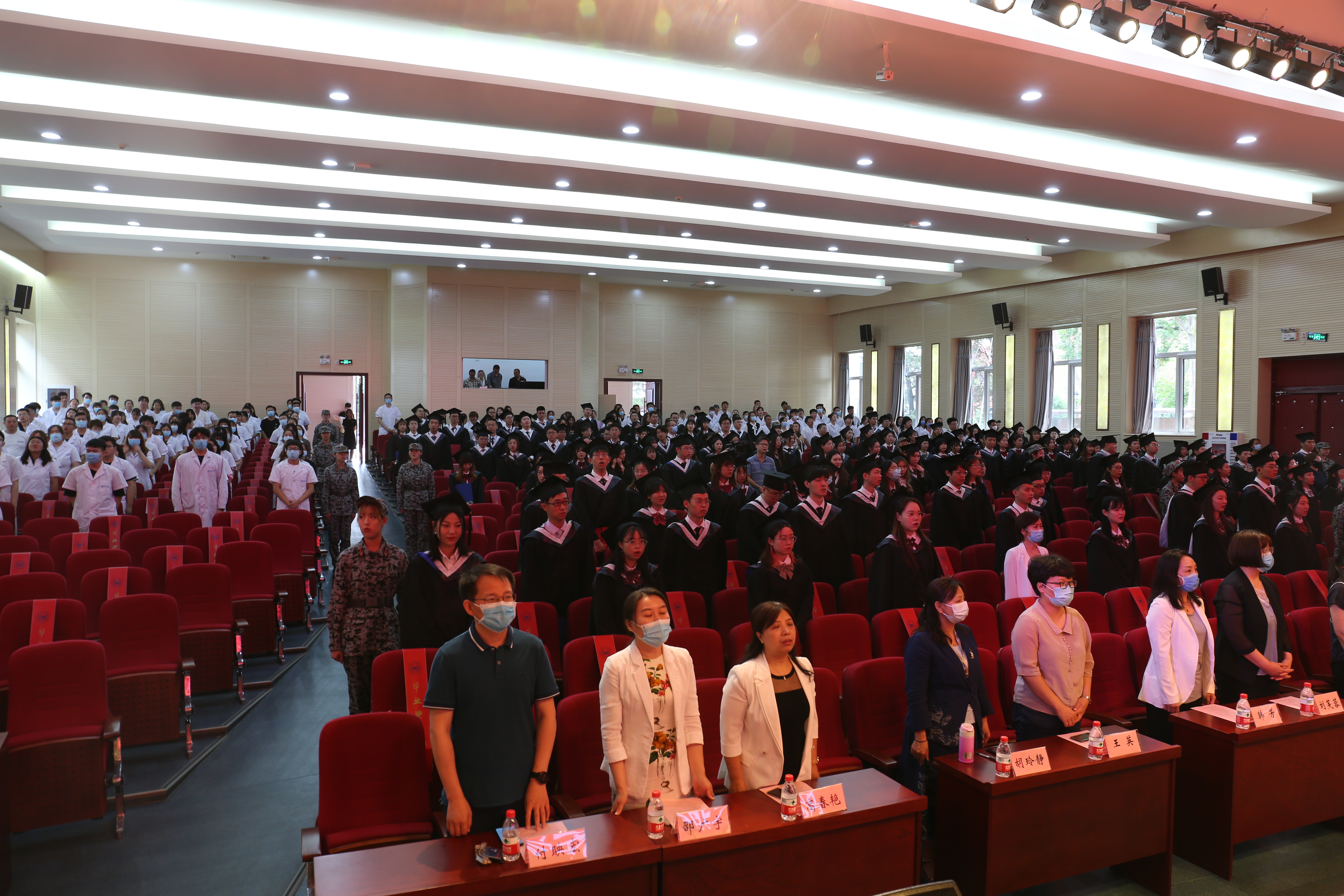 典礼开始前,播放了由学院团委制作的微视频《毕业∙青春》触动了全场毕业生的心弦,勾起了毕业生们对大学生活的无限回忆。视频中学院领导、各学系主任的毕业寄语,饱含了对毕业生的殷切祝愿。在庄严的国歌声中,2021届毕业生迎来了他们的毕业盛典。