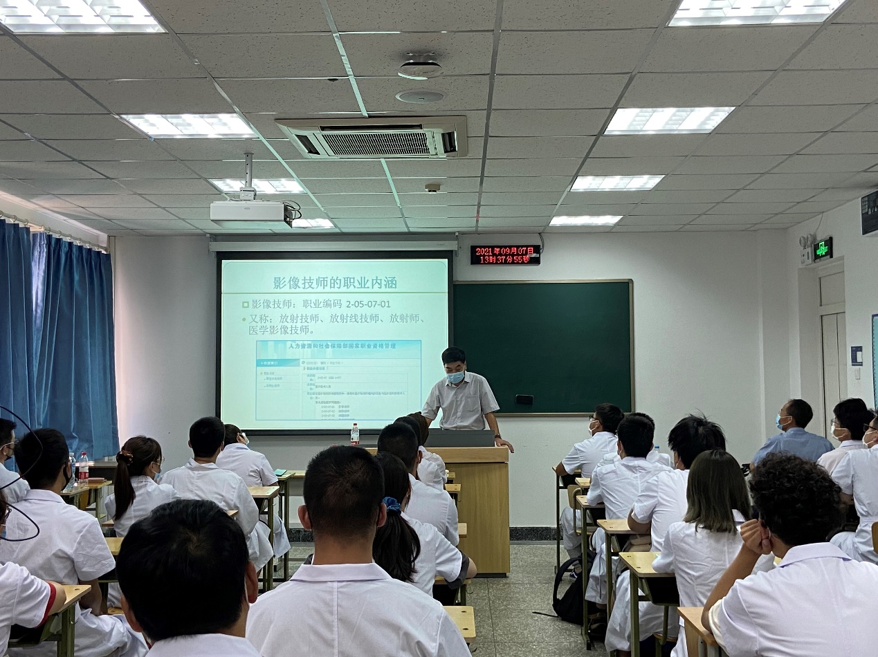 9月7日,我院医学影像学学系邀请中华医学会影像技术分会常务委员刘建新主任为21级医学影像技术专业新生带来第一节专业导论课。学院院长杨红、学系副主任董建鑫、胡贵祥和学系部分教师参加讲座。