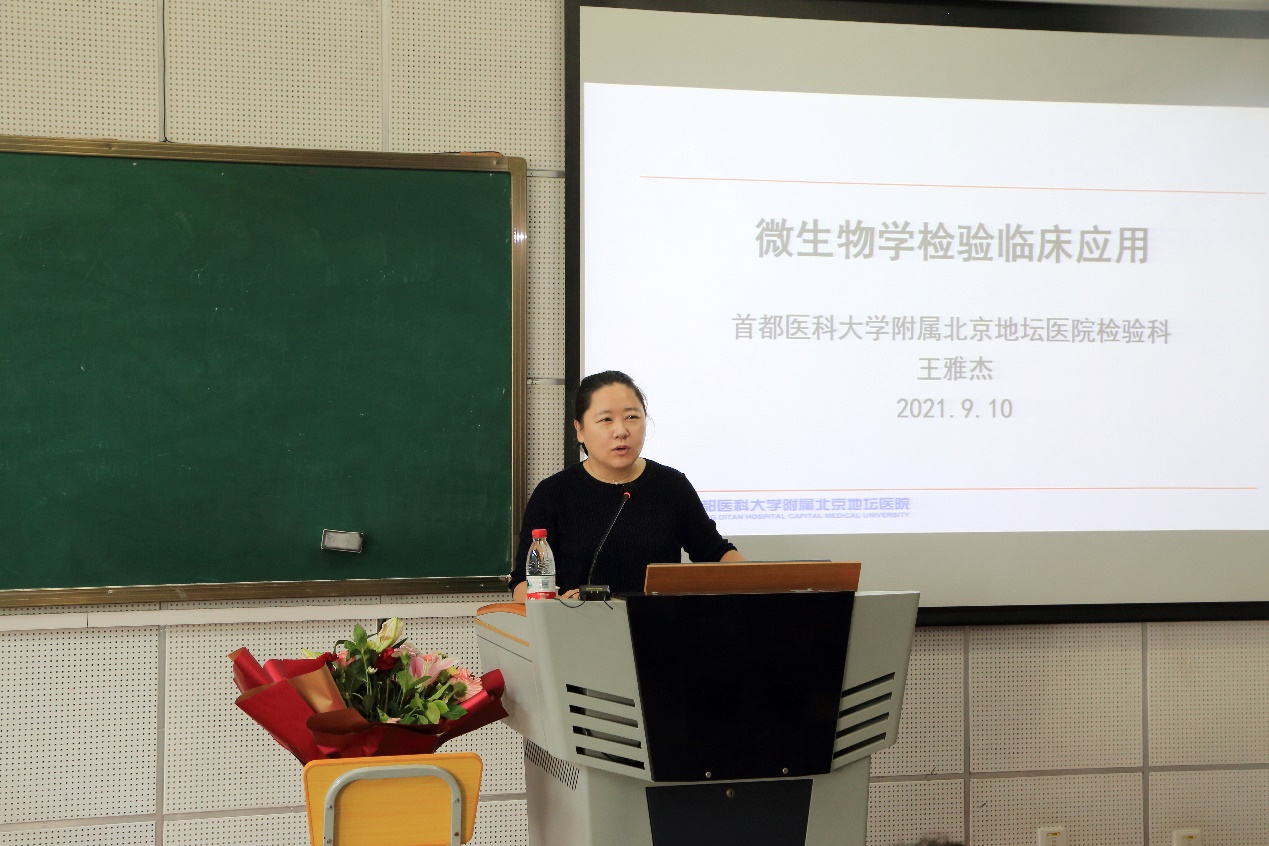 9月10日上午,我校附属北京地坛医院检验科主任、博士生导师王雅杰教授,应邀来我院,为师生们做了一场主题为“微生物学检验临床应用”的精彩专题报告。报告会由李晶琴老师主持,2021级医学检验技术专业全体学生及学院部分教师聆听了讲座。