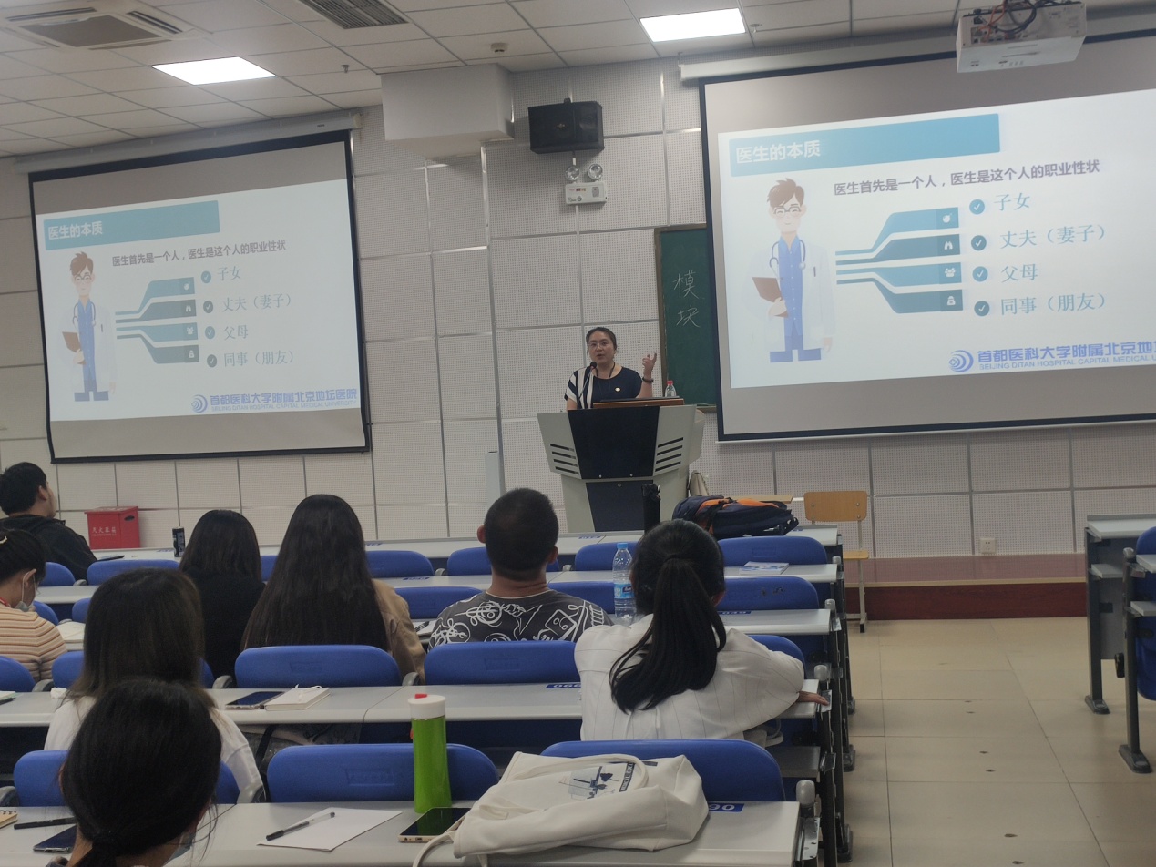 为使临床医学学系新生了解医学人际关系与沟通,加深对医患关系的了解, 9月22日,我院临床医学学系邀请我校附属北京地坛医院副主任医师池频频讲授“医学人际关系与沟通”公开课。