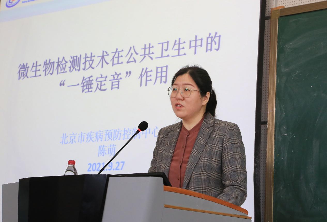 9月27日上午,北京市疾病预防控制中心免疫预防所、北京市实验室资质认定评审员、北京预防医学会检验与实验医学专委会委员、《国际病毒学杂志》编委、华西医科大学兼职教师陈萌主任,应邀来我院,为师生们做了一场主题为“微生物学检测技术在公共卫生中的‘一锤定音‘作用”的精彩报告。报告会由检验学系主任高春艳主持,2021卫生检验与检疫专业全体学生及学院部分教师聆听了讲座。