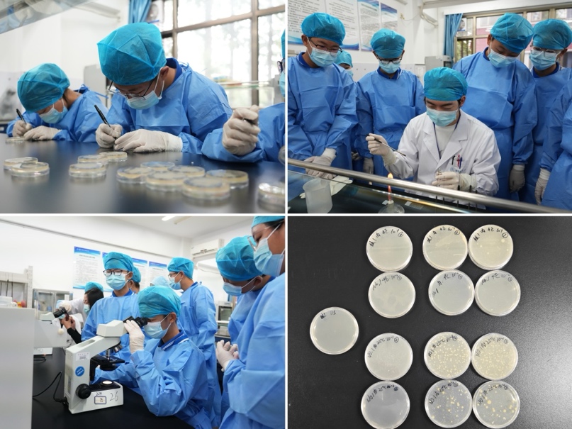 在实验结果观察环节,学生们在助教的指导下,观察了微生物培养的结果和显微镜下的微生物形态。他们不仅对微生物有了直观的认识,还深入理解了剩饭剩菜如果处理不当,易引发食源性疾病背后的科学原理。