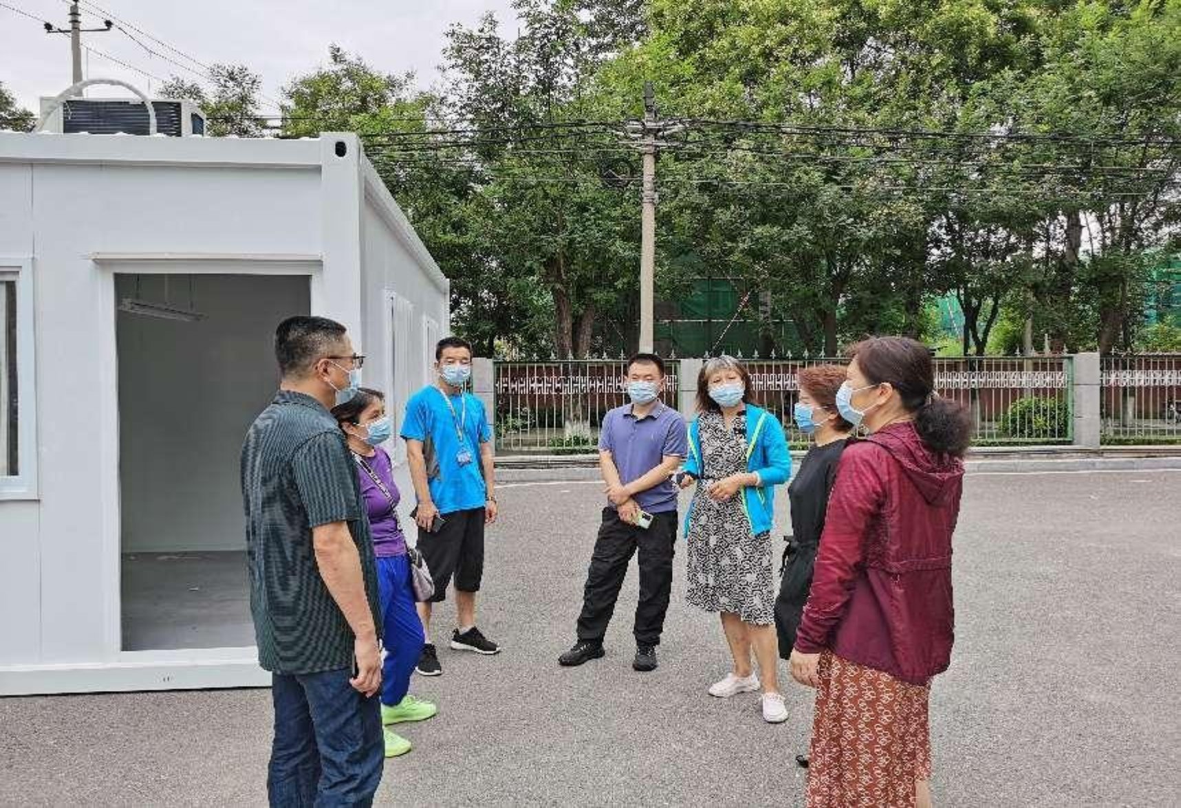 为稳妥做好秋季开学疫情防控工作,8月8日,顺义区光明街道办事处、社区卫生服务中心专家到学院指导学院核酸采样点配套设施设置工作,现场讨论了三区两通道位置安排、采样点通道、扫码、采样窗口规范设置、样本存放转运和医疗垃圾转运等细节问题。