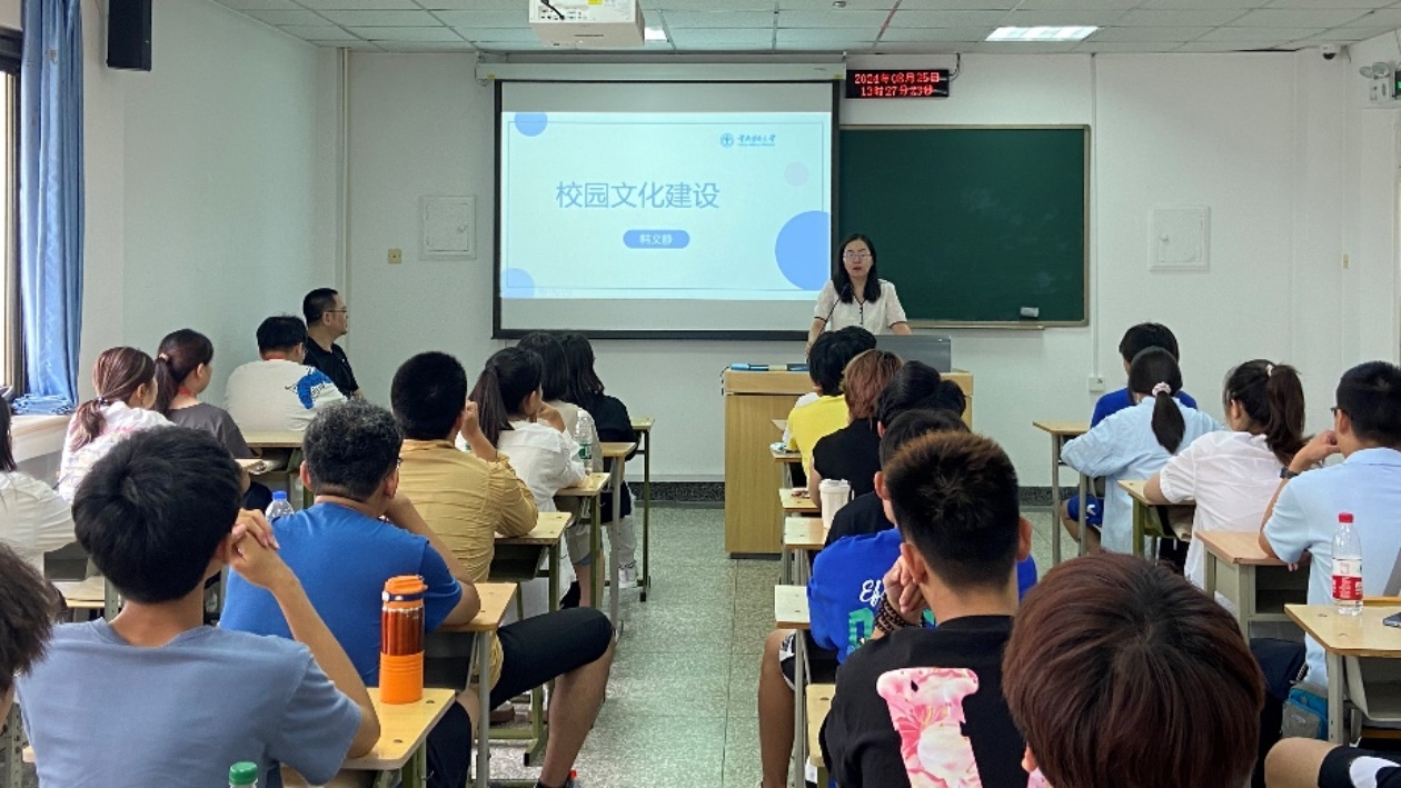 8月25日,专业思想教育工作有序开展。学系韩文静老师介绍了校园环境及丰富多彩的校园活动,列举了学长学姐们的荣誉成就,激励新同学们积极参与校园活动,培养创新开拓精神,提升创新研究思维和个人综合能力。