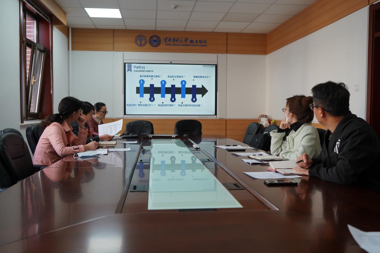 参会人员有学院主管学生工作副院长崔群颖,学生办公室主任张艳辉,医学信息技术与管理学(简称“信息管理学”)学系主任付映宏,信息管理学学系党支部书记信伟华,该专业辅导员李若男,学生办公室专职就业人员姜佳铃及学办其他工作人员。