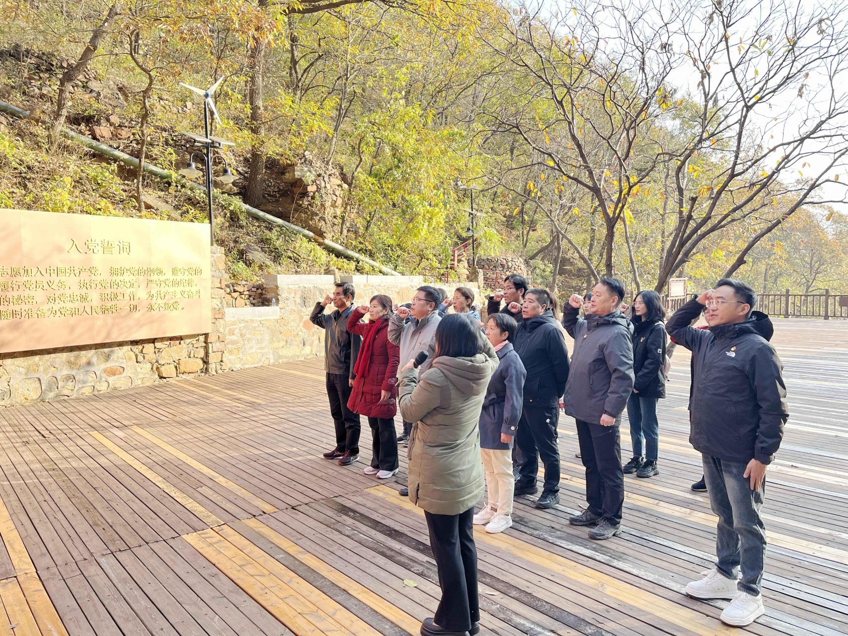 1940年9月的一个深夜,桃棚村五名党员在“红崖洞”举行了党支部成立大会,许下入党誓词,这是平谷第一个党支部诞生的时刻,从此党旗在这片土地上徐徐升起。党员们通过现场的讲述,重温了百年前那段峥嵘岁月中的艰辛,感受了中国共产党的坚韧不拔,接受了一次精神上的洗礼。在红崖洞前,全体党员面向党旗,举起右拳,重温入党誓词,字字千钧、句句神圣,铿锵誓言久久回荡,强烈震撼着现场每一位党员的内心,表达了为党和人民的事业奋斗终生的决心。