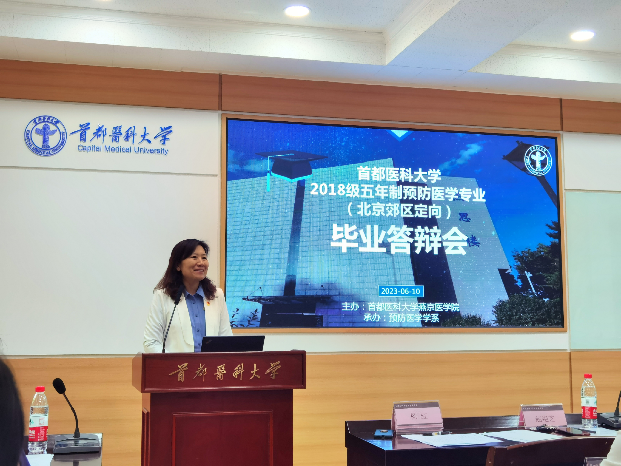 6月10日,我院举办2023届五年制预防医学专业(北京郊区定向)本科生毕业(设计)论文答辩会。学院邀请了来自北京大学中国卫生发展研究中心、中国疾病预防控制中心、北京市疾病预防控制中心和10个区级疾病预防控制中心以及我校公共卫生学院的14位行业专家组成毕业(设计)论文答辩委员会。学校督导专家王学江,教务处质量控制负责人李民华,学院党委副书记、院长杨红,党委副书记赵艳芝出席了会议。