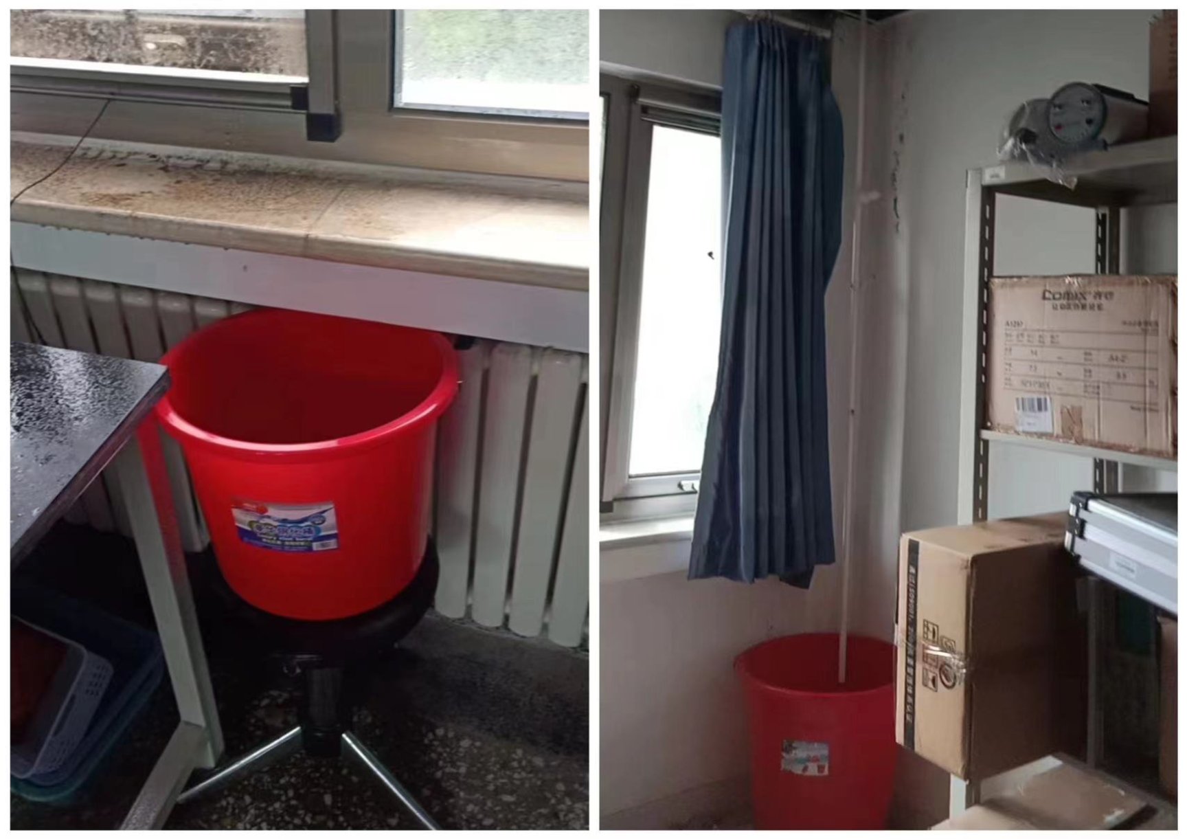 室内检查漏水点,提前预备水桶接水