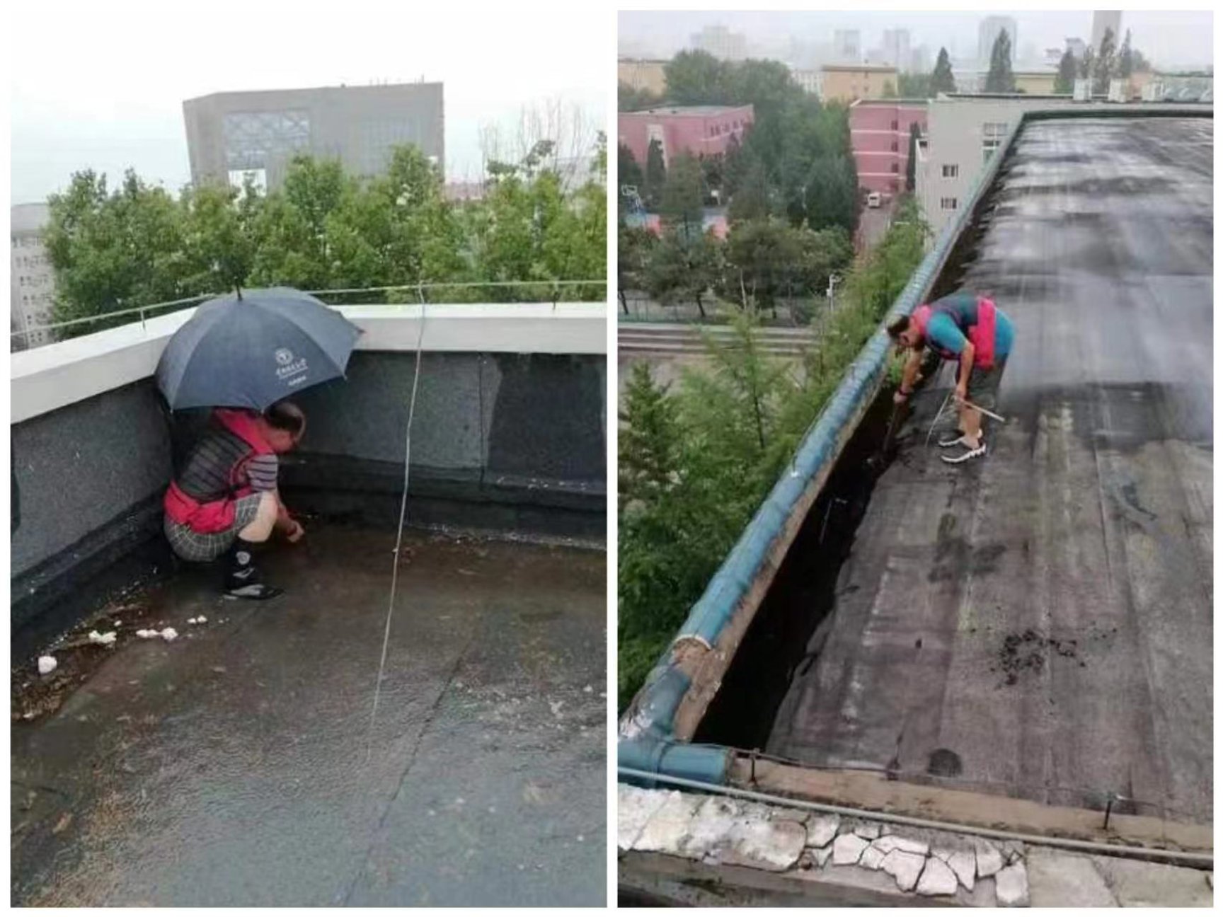 学院各部门按防汛要求,认真落实了学院关于大雨过后第一时间巡视顶层房间漏雨要求,根据部门自查和后勤检查发现问题,对7处屋顶漏雨房间进行了及时处理。