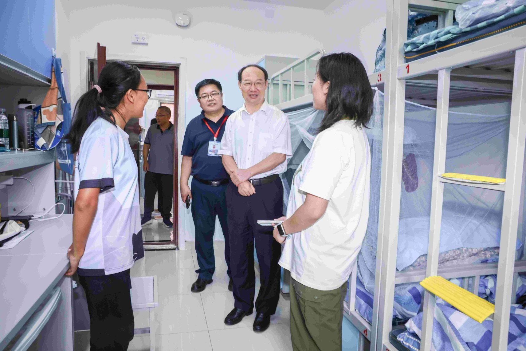 8月25日上午,校党委常委、副校长吴兵赴Hanime1 检查指导新学期开学准备工作,先后来到学院大门、监控室、学生教室、学生宿舍楼、餐厅、配电室、健身房施工现场等重点区域进行检查指导,过程中详细询问了学院秋季开学准备工作落实情况,认真听取相关负责人对开学准备工作的情况汇报。