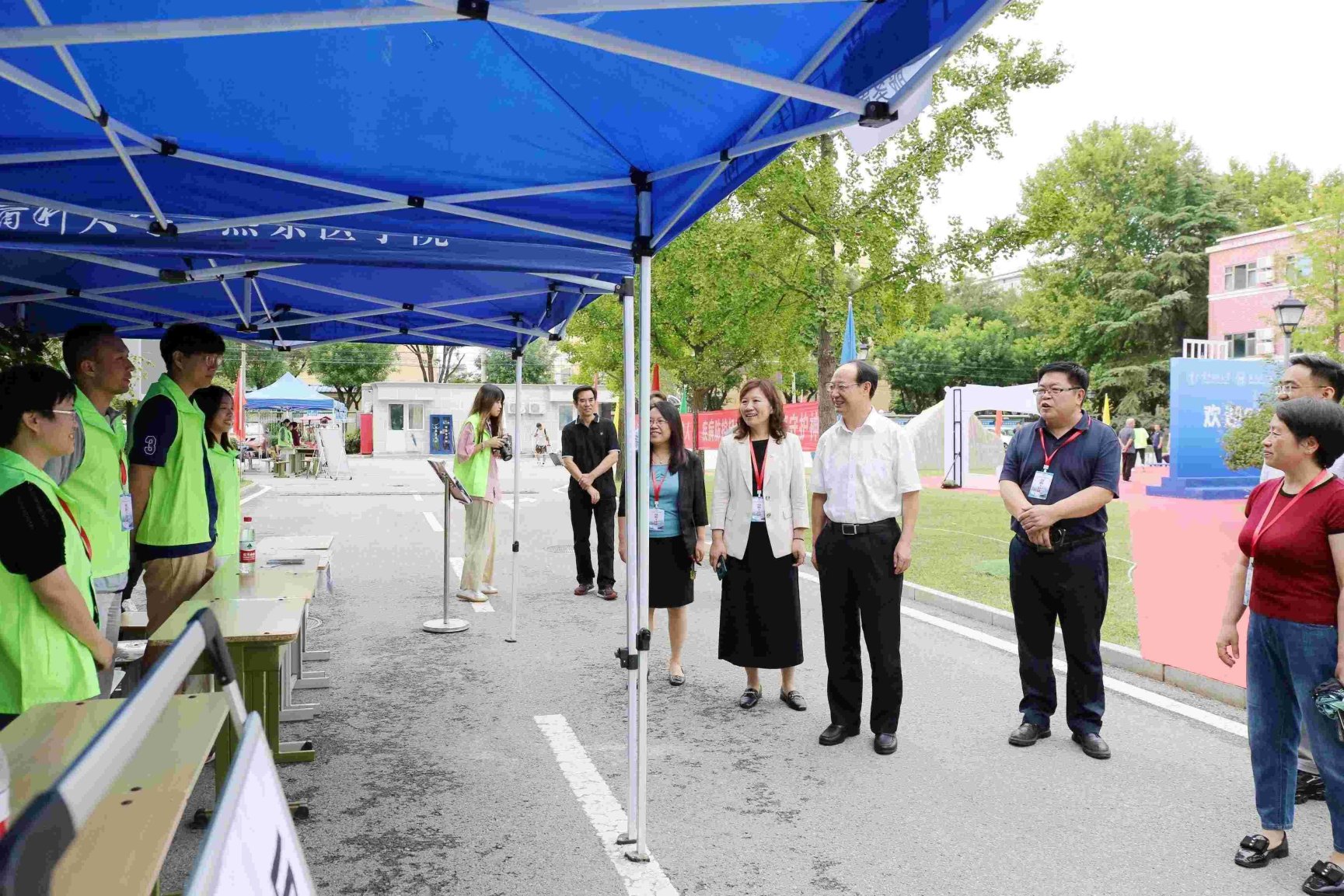 8月26日中午,校党委书记呼文亮专程来到学院迎新现场指导工作,逐一走访各学系、各部门迎新站点、学生宿舍和学院餐厅,亲切看望新生,慰问迎新工作人员、学生志愿者,实地检查指导学院迎新保障工作,详细了解新生报到情况,对新生表示热切关心和欢迎。