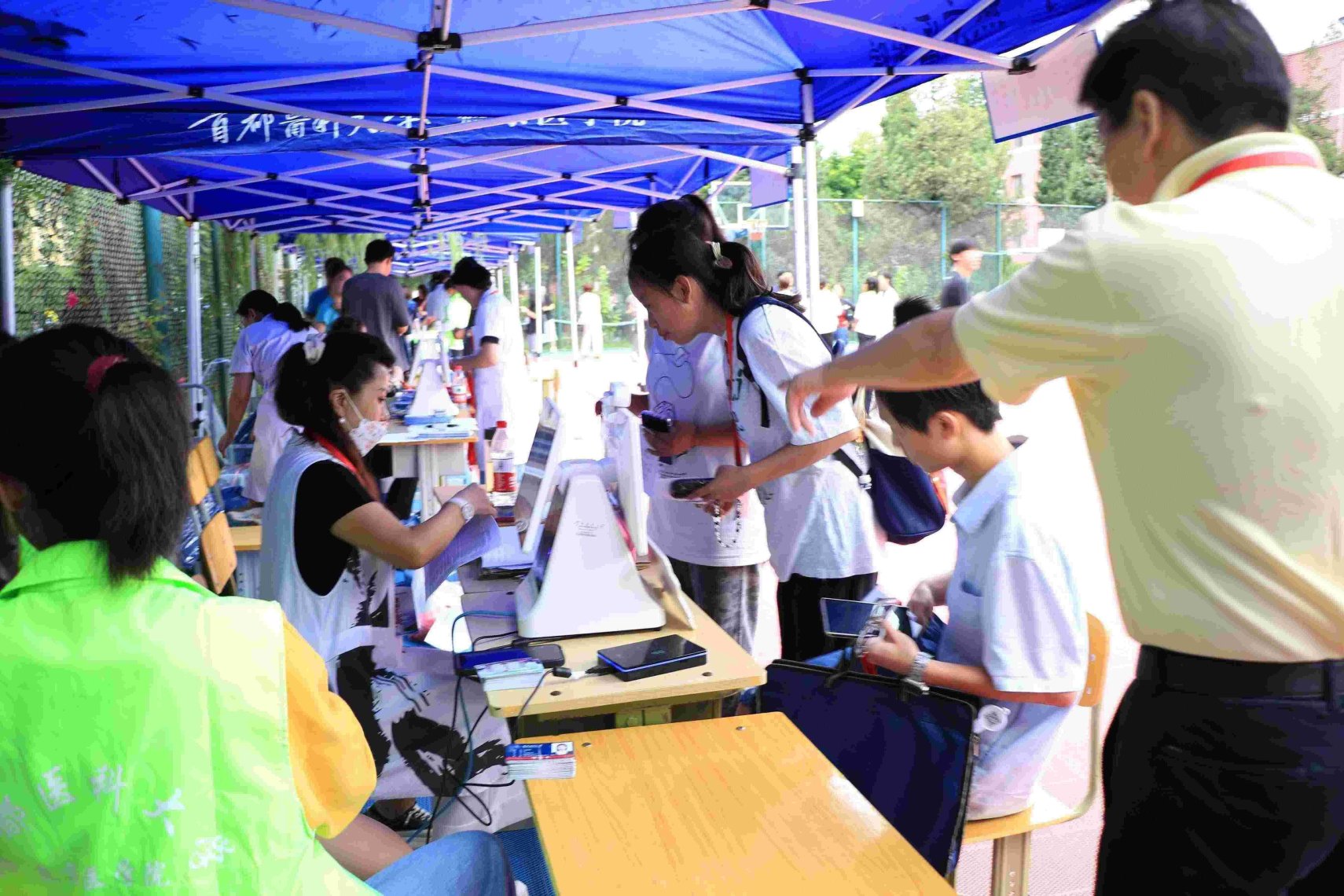 学院广场是迎新集中点,不同片区提供不同服务,一站式满足新生同学信息获取、纪念留念等多元需求。新生和家长们拍照留念,留下校园里的第一张照片,定格成长历程中的重要一刻。
