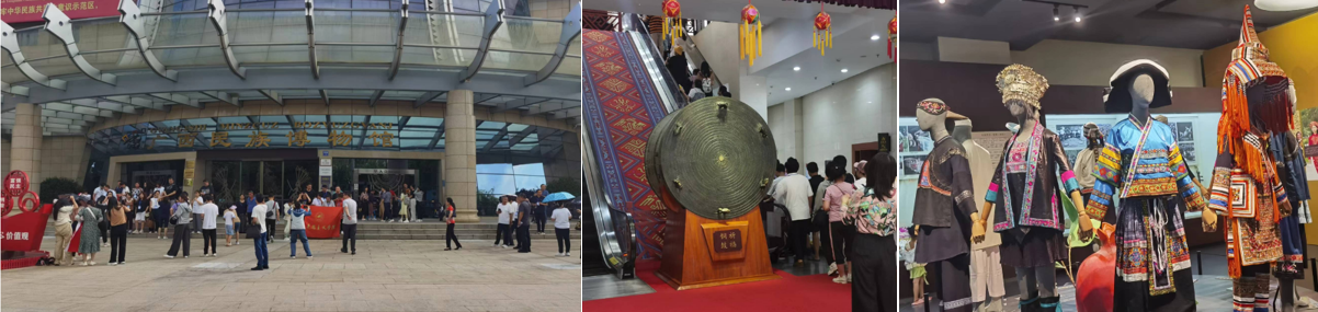 7月10日上午,大家参观了广西民族博物馆,在这里,团队成员分别观看了穿越时空的鼓声——铜鼓文化陈列、壮族文化展、世界文化遗产——左江花山岩画文化景观、昨日重现——百年老物件展等展品陈列,对中华民族的悠久历史、广西各族先民的聪明智慧、壮族历史与文化有了直观充分的了解,重温了百年来波澜壮阔的民族复兴和社会变革历史进程。下午,团队一行参观了昆仑关战役旧址。大家跟随讲解员先后走过关楼、牌坊、纪念塔、阵亡将士公墓、纪战碑亭以及战役的阵地、工事遗址等处,详细了解此次战役的背景、过程、结果与意义,对伟大抗战精神的深刻内涵有了更全面认识。