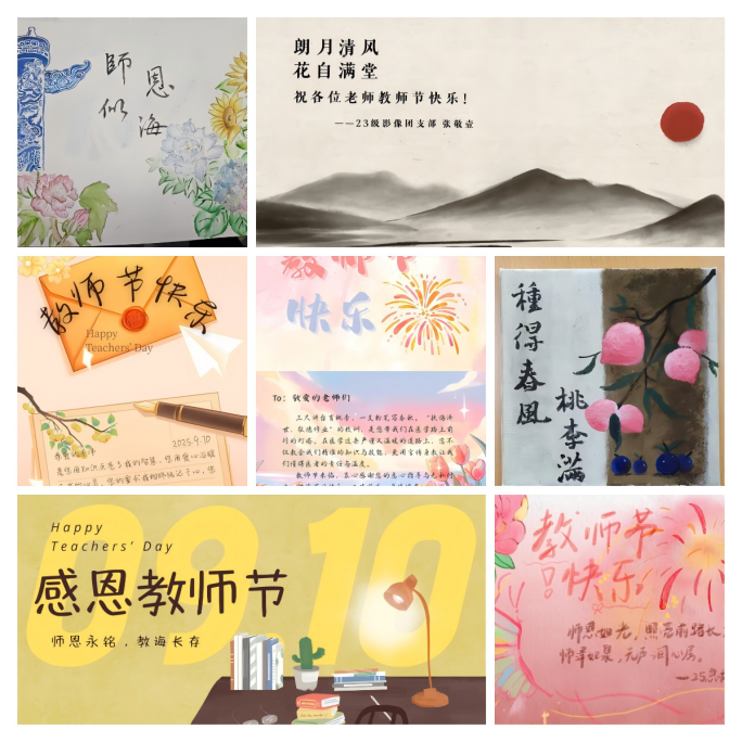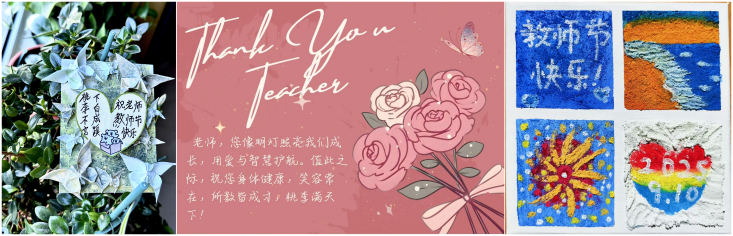 9月初,校区团委面向全体学生发出“教师节原创贺卡、海报”征集令,鼓励大家以手作之美传递敬师之情。活动期间涌现出众多真挚动人、创意纷呈的佳作,经过团委与教师代表的共同评审,将其中优秀作品通过“青春燕院”公众号推送。一封封跃然屏幕的祝福,传递着同学们送给老师的深情告白,把“老师,您辛苦了”“感谢师恩”写进每个人的心里,让尊师重教的风尚在校园四季常青。