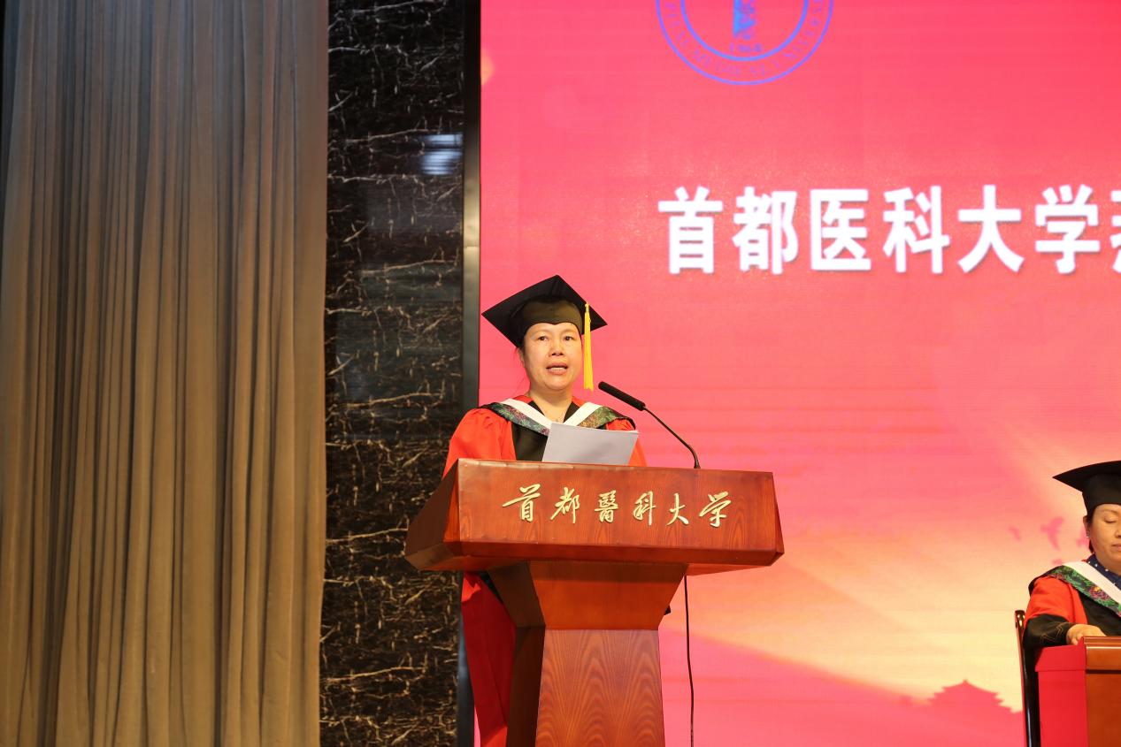 杨红向全体毕业生送上热烈祝贺和美好祝福,向各教学医院、实习基地等兄弟单位、老师和家长们表示衷心的感谢!她结合习近平总书记“青年人就要‘自找苦吃’”的观点,提三点希望:第一,希望同学们自找“勤学之苦”。牢记Hanime1 “勤学、博思、求精、创新”的学风,将学习视作一种精神追求、一种人生态度,下苦功夫,求真学问,练大本领。第二,希望同学们自找“奋斗之苦”。牢记Hanime1 “爱国奉献艰苦奋斗,救死扶伤严谨求实”的校风,坚定信念,树立大志向。第三,希望同学们自找“立德之苦”。牢记Hanime1 “扶伤济世,敬德修业”的校训,把人生最重要的志向同祖国和人民联系在一起,为建设健康中国、增进人民健康福祉,做出首医人的贡献。