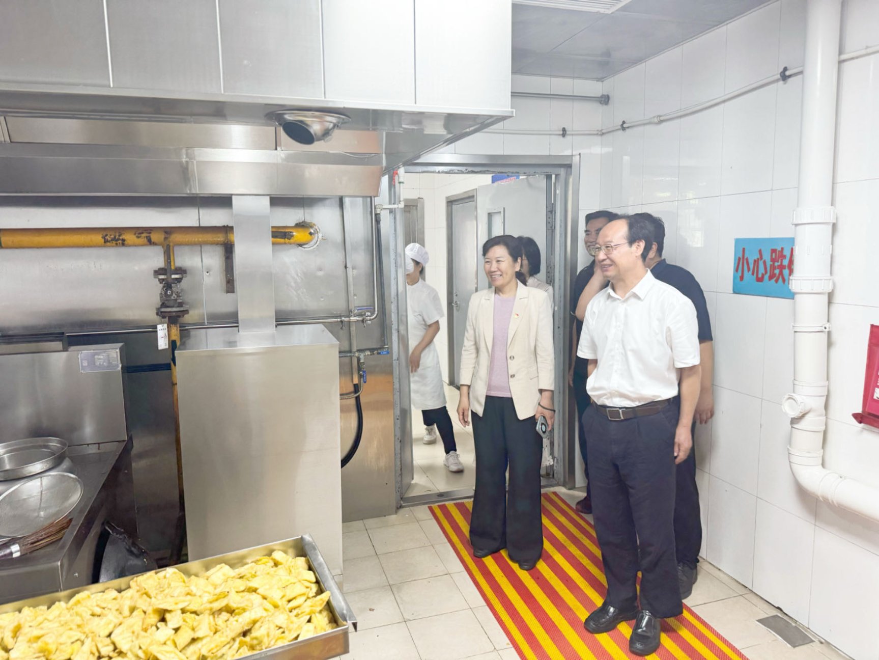 在餐厅,呼文亮详细询问食堂供餐情况,强调要严把食品安全关,保障广大师生的饮食安全与健康。