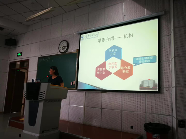 接着,高春艳老师详细介绍了学系实验教学中心的组织构架、仪器设备、信息化建设和实验教学改革成果,并鼓励同学们在具备基础医学、临床医学的基本理论和基本知识的基础上不断提高自身的实践能力。高老师还耐心解答了学生关于实验室安全的疑问。