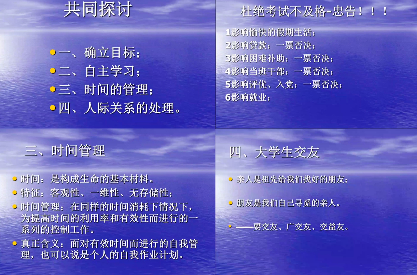 学系副主任肖焕新老师围绕“大学生的自我管理”,与新生就确立目标、自主学习、时间管理、人际关系的处理四个方面进行了共同探讨和交流,引导学生及早做好学习、生活上的明确计划,不要停下学习的脚步,以度过有意义的大学时光。