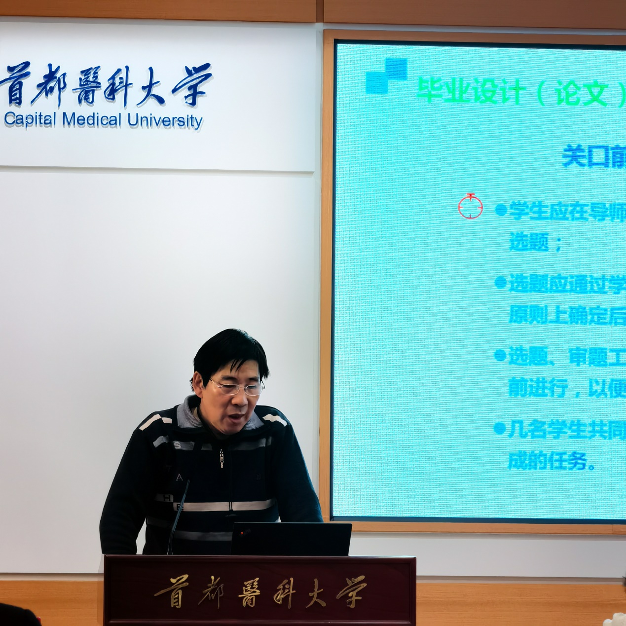 预防医学学系主任袁作雄介绍了学院五年制预防医学专业毕业设计组织实施方案,从“关口前移,把好毕业设计选题环节”,“加强过程指导,提升专业素养”“提升论文质量,严把毕业标准”“规范答辩程序,落实三全育人”等方面着重强调了毕业设计(论文)质量要求,为2024届毕业论文设计指导工作的顺利开展奠定了良好基础。