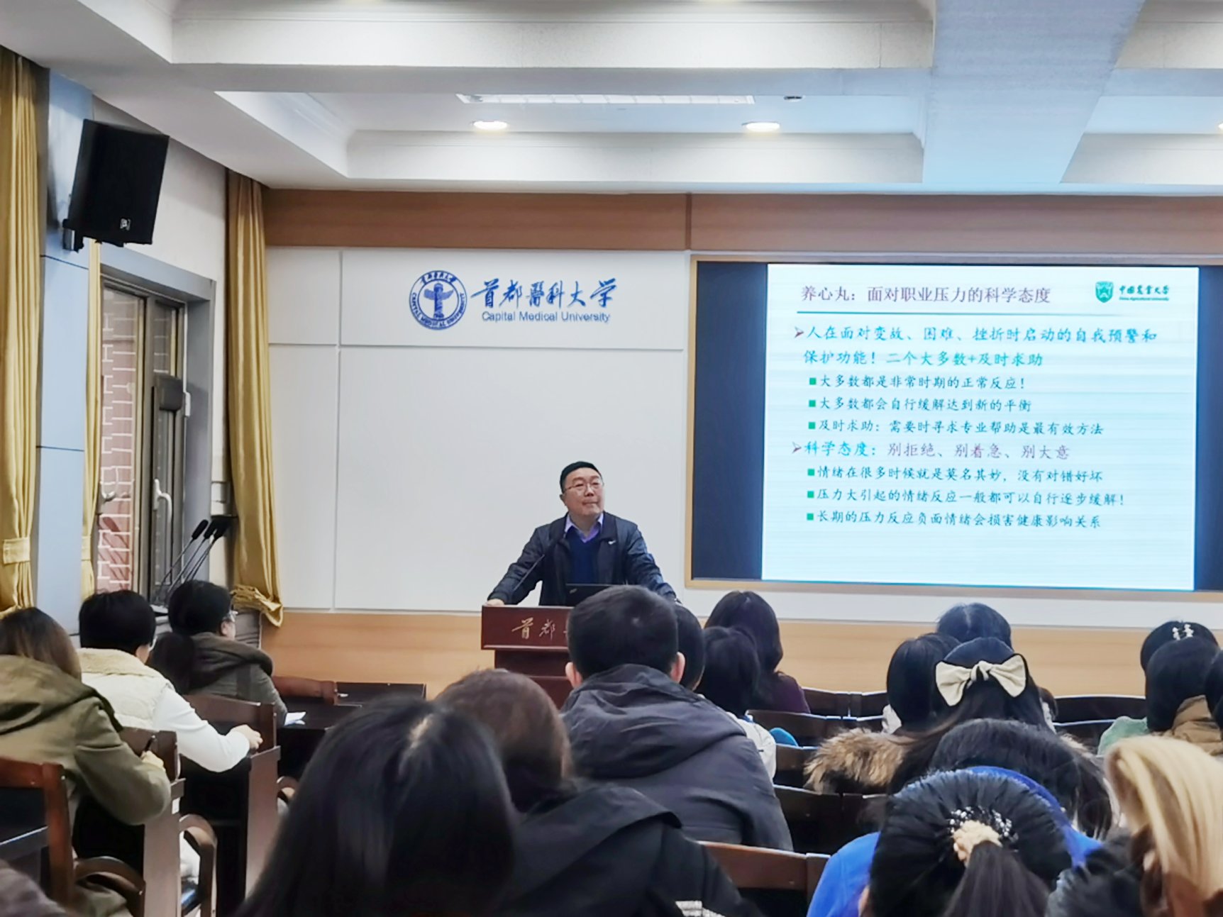 施钢的讲座集理论性、实践性、实用性于一体,深奥理论轻车熟路,生动案例娓娓道来,提出的如何用科学态度面对职业压力的方法切实可行,指出的如何评估自己的健康状态和识别隐患的举措深入浅出,大家纷纷表示受益匪浅。