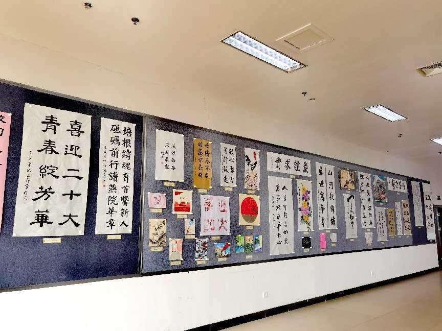 举办艺术作品展是我院文化建设的一项传统项目,迄今已连续举办了17届,在学院文化建设中发挥着重要的作用。本次活动围绕“喜庆二十大,师德铸师魂”的主题向师生征集参展作品,师生反响热烈,各施其能,各展其技,积极踊跃投稿,共征集到师生创作的作品百余件。此次展会展出了其中50余件优秀作品,作品种类丰富,呈现形式多样,包括书法、绘画、篆刻、剪纸、刺绣、手工等各类作品,吸引了千余名师生纷纷前来观赏学习,学院领导汤海新书记、杨红院长、赵艳芝副书记、崔群颖副院长、刘清副院长也第一时间亲自前往参观点评。