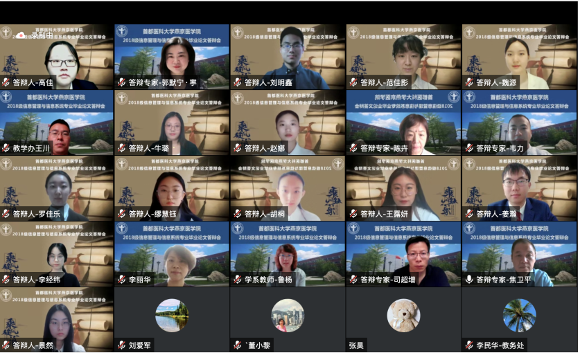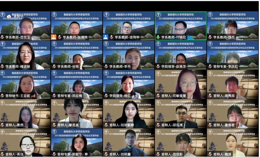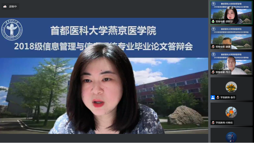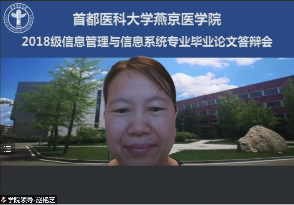 6月11日,2022届信息管理与信息系统专业(卫生信息管理方向)首届毕业论文答辩会通过线上形式顺利完成。学院高度重视并特邀请生物医学工程学院、北京市卫生健康大数据与政策研究中心以及Hanime1 各实践教学基地的10位行业专家组成答辩委员会。出席答辩会的还有Hanime1 杨红院长、赵艳芝副书记、学校教务处相关负责人、校级督导专家、实践教学基地指导教师和教学秘书、信息管理与信息系统专业全体教师及教学办相关负责人。毕业论文答辩会由付映宏主任主持。